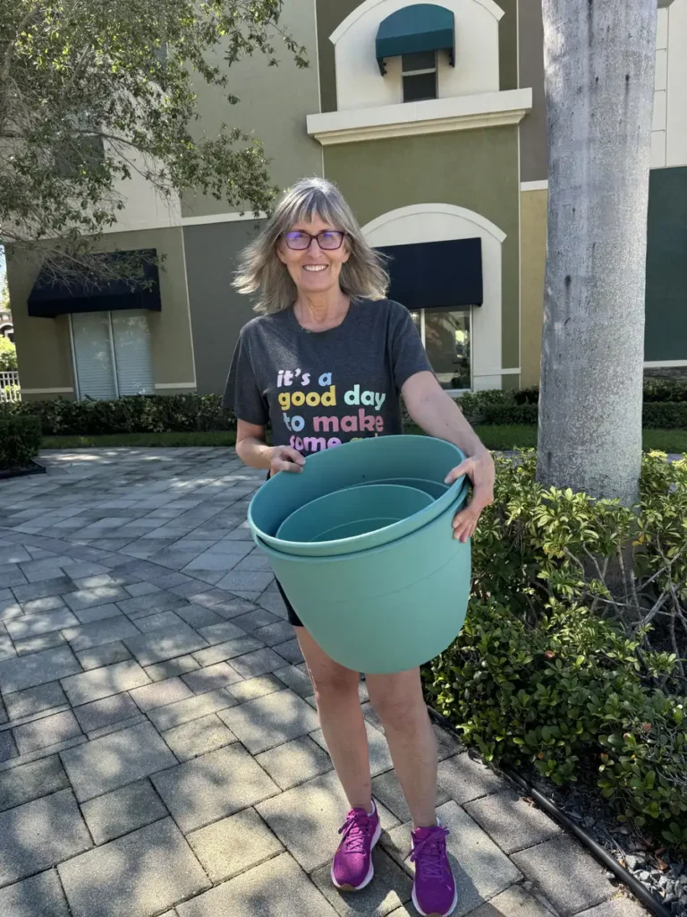 Thank you, Kelly, for adopting the recycled-plastic planter. I knew from our conversation that I couldn’t have passed it on to a better person—your background in media art, your love of colour and visual style, all of it made this the perfect match.