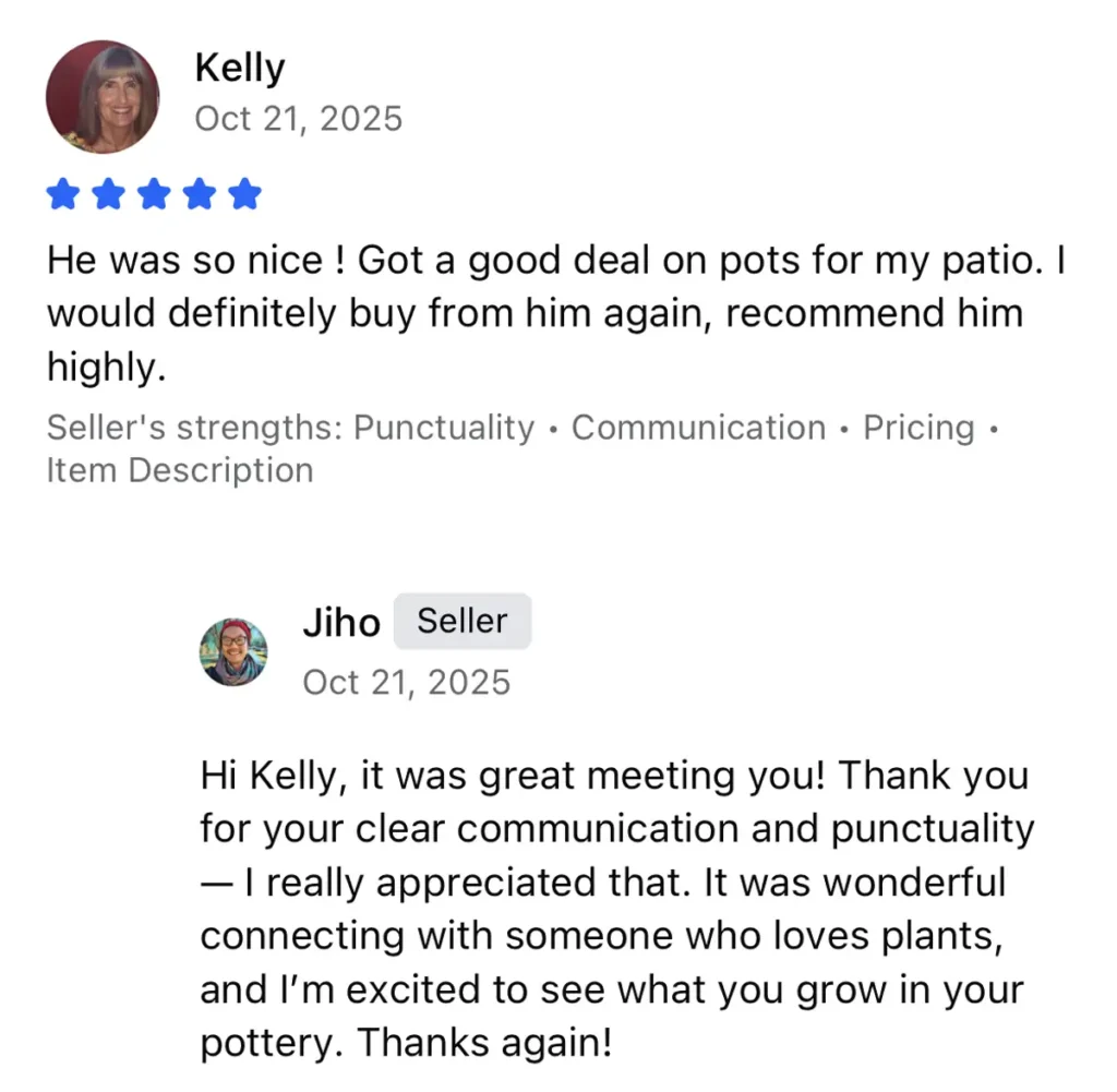 Kelly, thank you again for your ease of communication, your artistry, and your clear vision. I’m excited to see how this planter becomes part of your creative space and supports whatever plant you choose next. Here’s to many more beautiful moments with green and art combined.